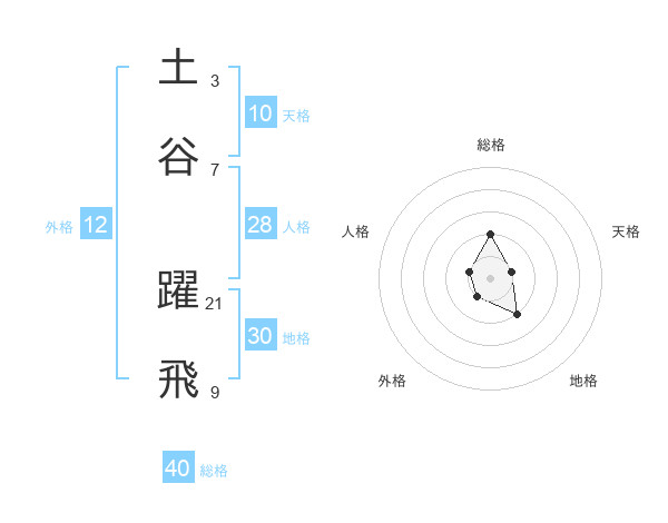 土谷 躍飛さんの総格は40画の2点!