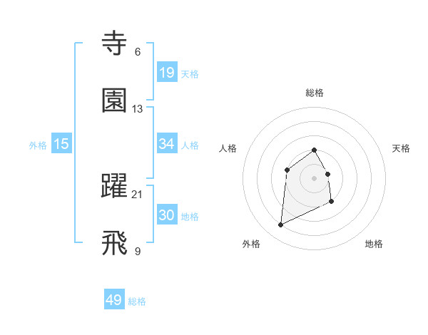 寺園 躍飛さんの総格は49画の2点!