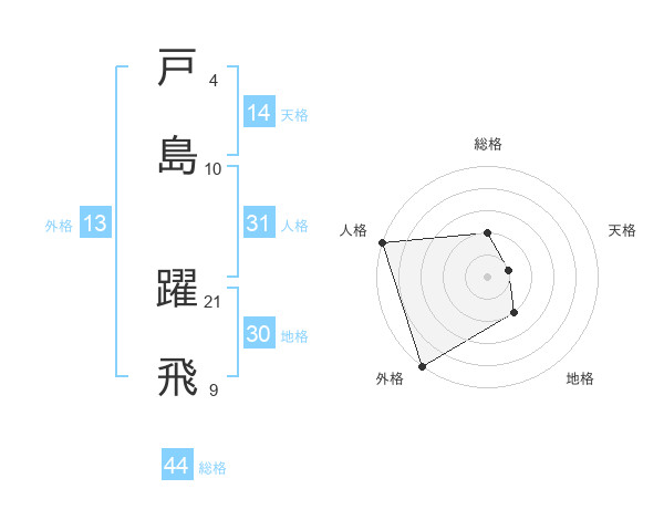 戸島 躍飛さんを姓名の画数から五運を鑑定