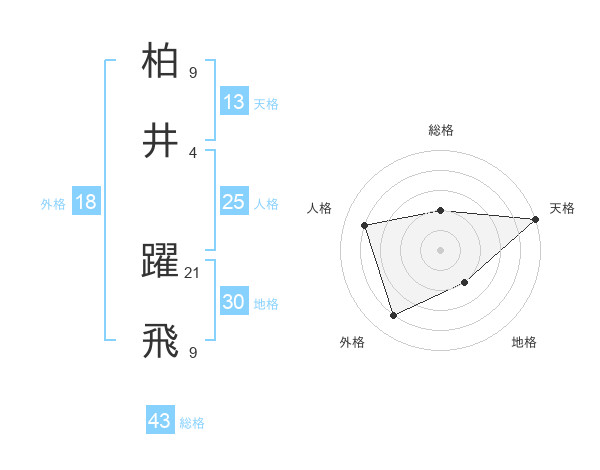 柏井 躍飛さんを姓名の画数から五運を鑑定