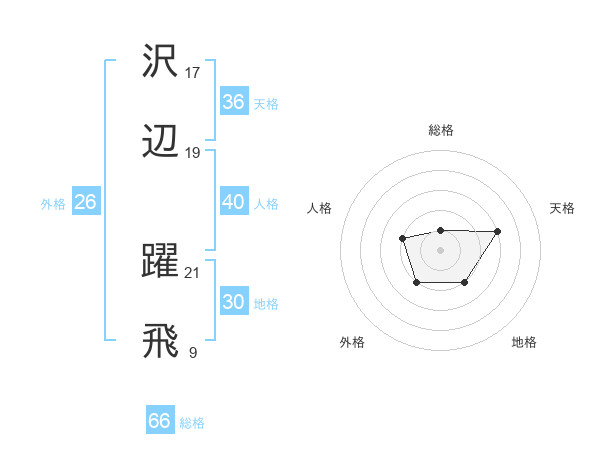 沢辺 躍飛さんを姓名の画数から五運を鑑定