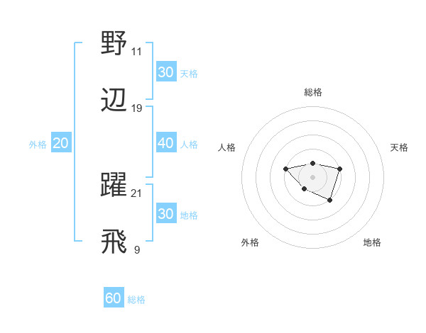 野辺 躍飛さんの総格は60画の1点!