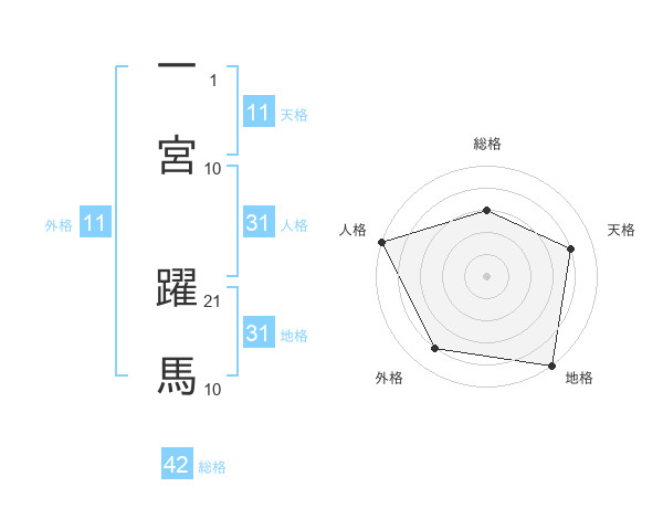 一宮 躍馬さんの地格は31画の5点!