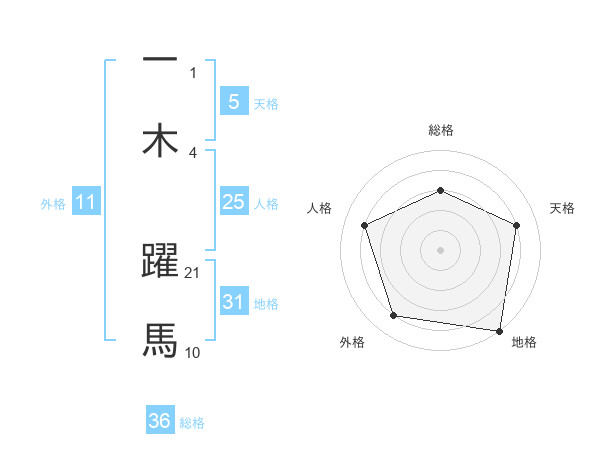 一木 躍馬さんを姓名の画数から五運を鑑定