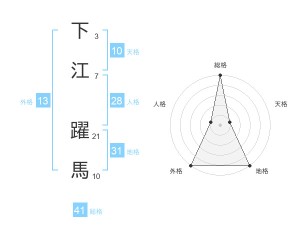 下江 躍馬さんの総格は41画の5点!