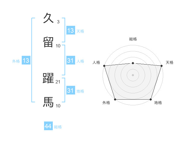 久留 躍馬さんを姓名の画数から五運を鑑定