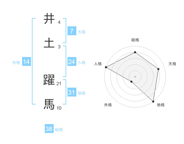 井土 躍馬さんを姓名の画数から五運を鑑定