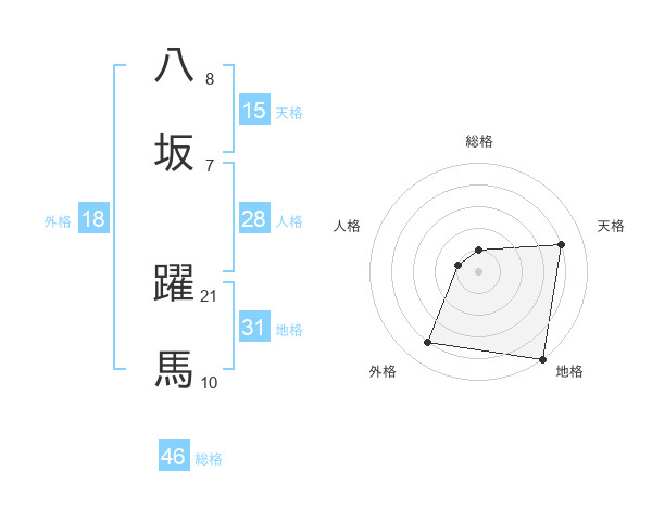 八坂 躍馬さんの地格は31画の5点!