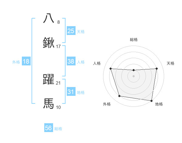 八鍬 躍馬さんを姓名の画数から五運を鑑定