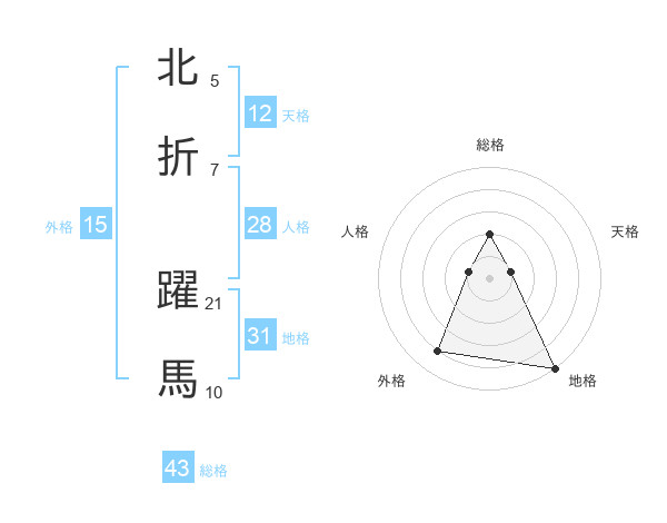 北折 躍馬さんの総格は43画の2点!