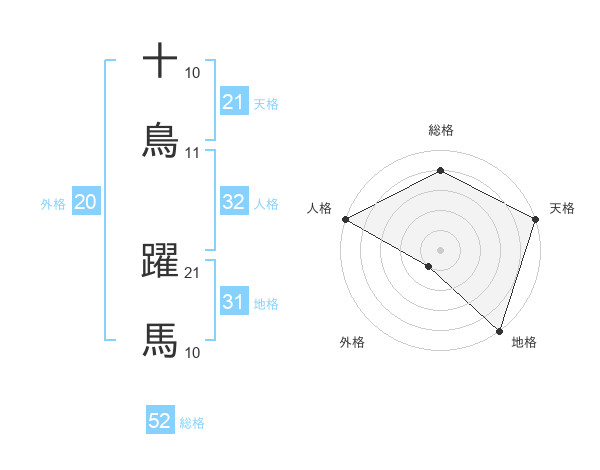 十鳥 躍馬さんを姓名の画数から五運を鑑定
