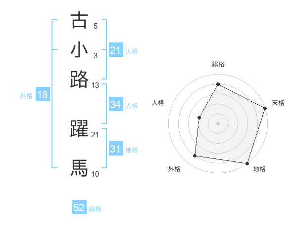 古小路 躍馬さんを姓名の画数から五運を鑑定