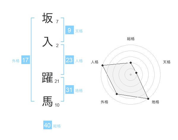 坂入 躍馬さんの地格は31画の5点!