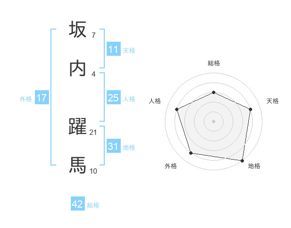 坂内 躍馬さんを姓名の画数から五運を鑑定