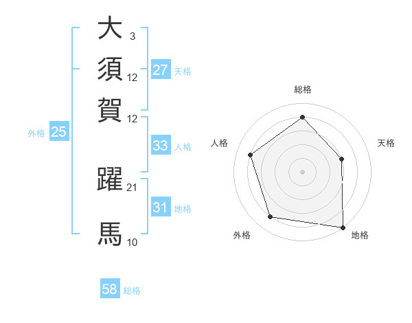 大須賀 躍馬さんを姓名の画数から五運を鑑定
