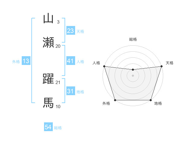 山瀬 躍馬さんの外格は13画の5点!