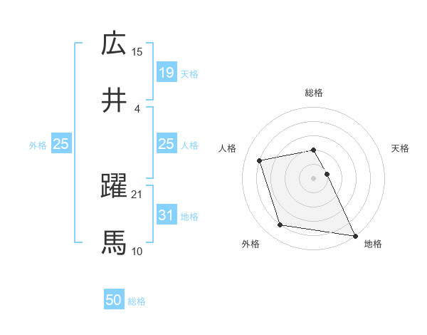 広井 躍馬さんを姓名の画数から五運を鑑定
