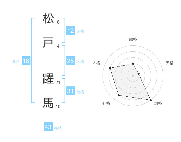 松戸 躍馬さんを姓名の画数から五運を鑑定
