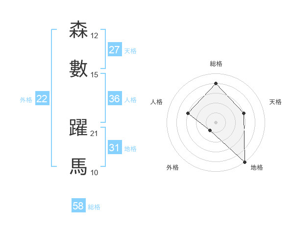 森數 躍馬さんを姓名の画数から五運を鑑定