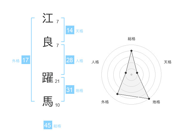 江良 躍馬さんを姓名の画数から五運を鑑定