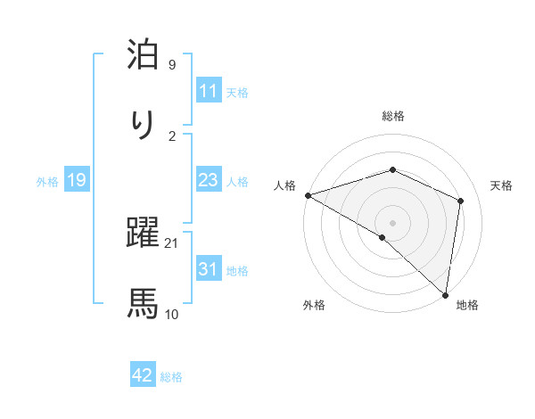 泊り 躍馬さんを姓名の画数から五運を鑑定