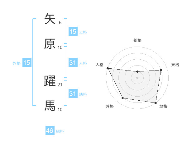 矢原 躍馬さんの人格は31画の5点!