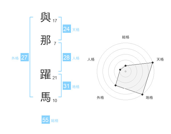 與那 躍馬さんの総格は55画の1点!