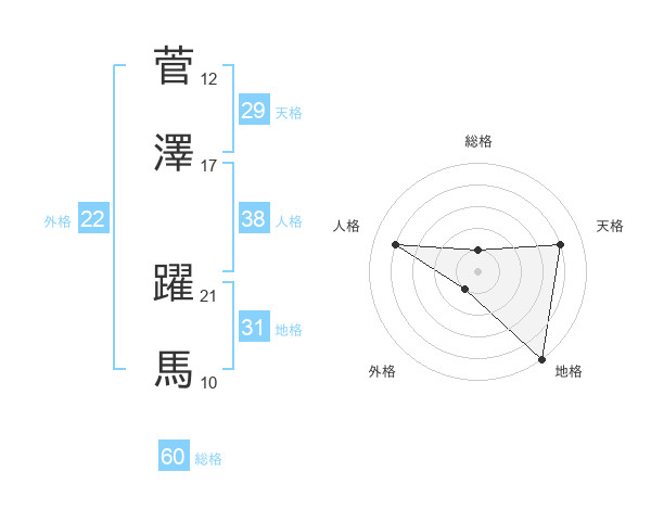 菅澤 躍馬さんの外格は22画の1点!