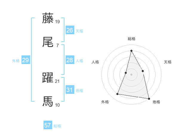 藤尾 躍馬さんの総格は57画の4点!