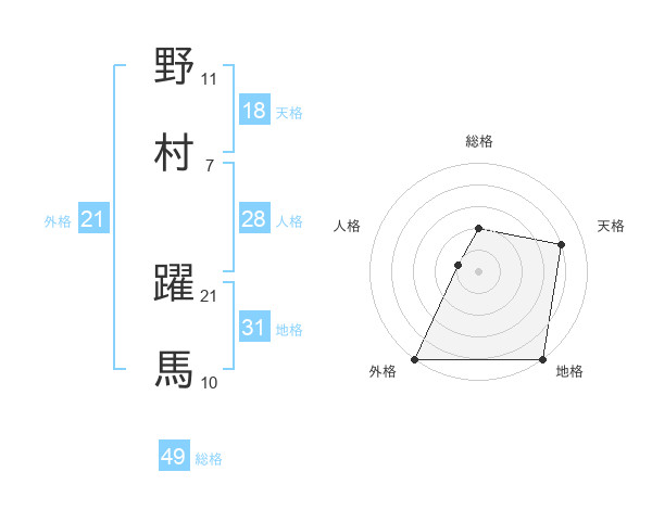 野村 躍馬さんを姓名の画数から五運を鑑定