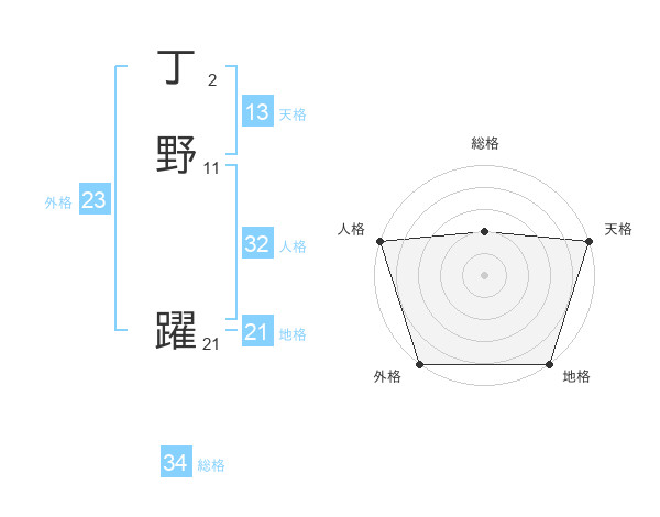 丁野 躍さんの総格は34画の2点!
