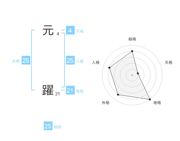 元 躍さんの総格は25画の4点!