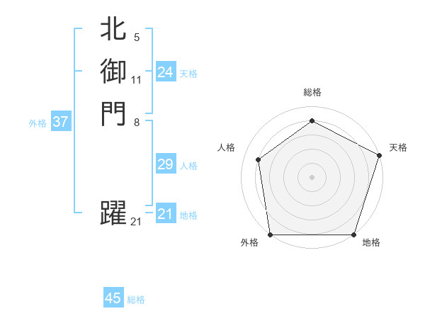 北御門 躍さんの総格は45画の4点!