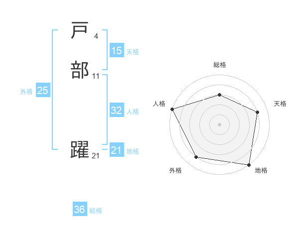 戸部 躍さんの地格は21画の5点!