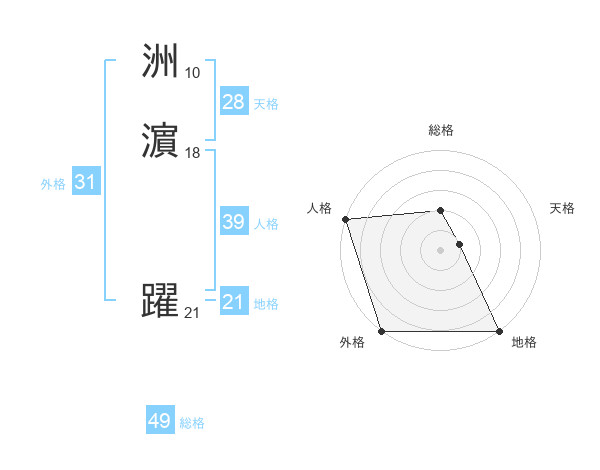 洲濵 躍さんの人格は39画の5点!