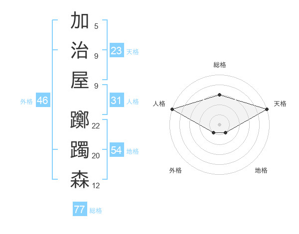 加治屋 躑躅森さんを姓名の画数から五運を鑑定