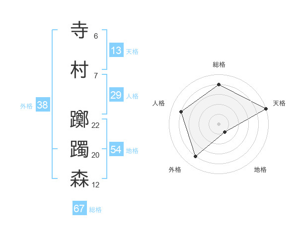 寺村 躑躅森さんの総格は67画の4点!