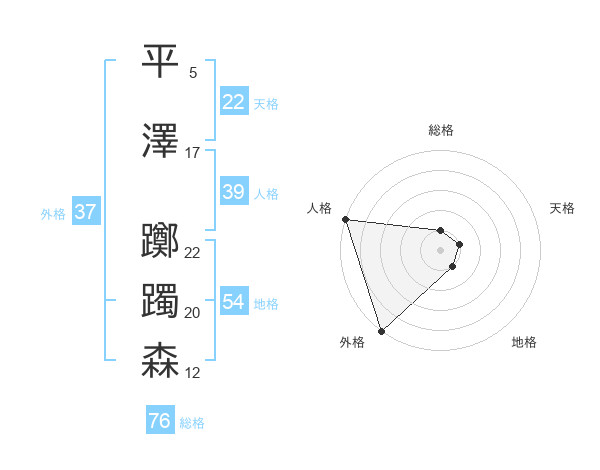 平澤 躑躅森さんの外格は37画の5点!
