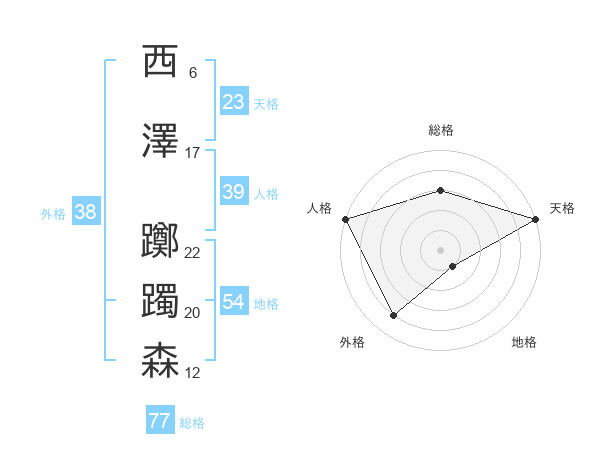 西澤 躑躅森さんを姓名の画数から五運を鑑定