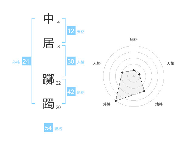 中居 躑躅さんを姓名の画数から五運を鑑定