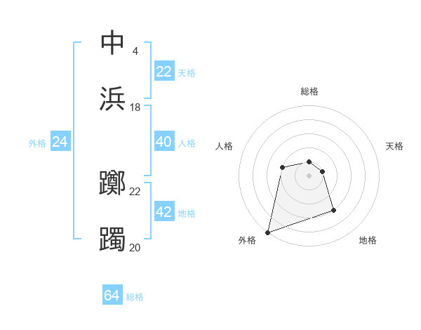 中浜 躑躅さんの総格は64画の1点!