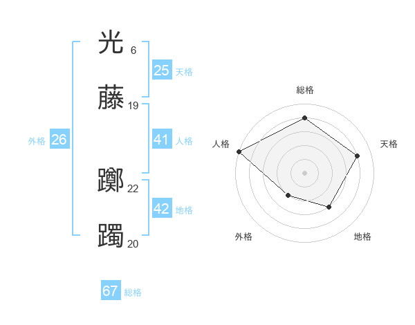 光藤 躑躅さんの総格は67画の4点!