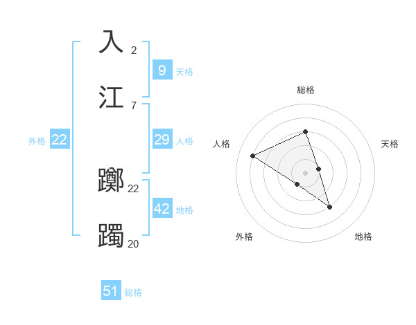 入江 躑躅さんを姓名の画数から五運を鑑定