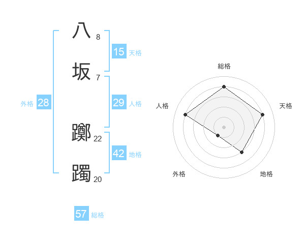 八坂 躑躅さんの総格は57画の4点!