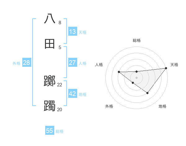 八田 躑躅さんを姓名の画数から五運を鑑定