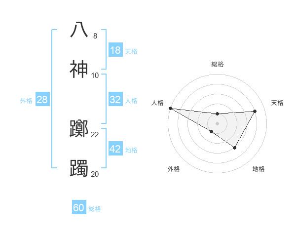 八神 躑躅さんの天格は18画の4点