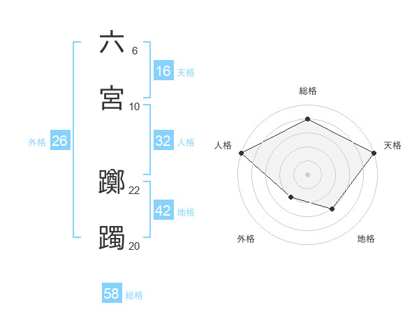 六宮 躑躅さんを姓名の画数から五運を鑑定