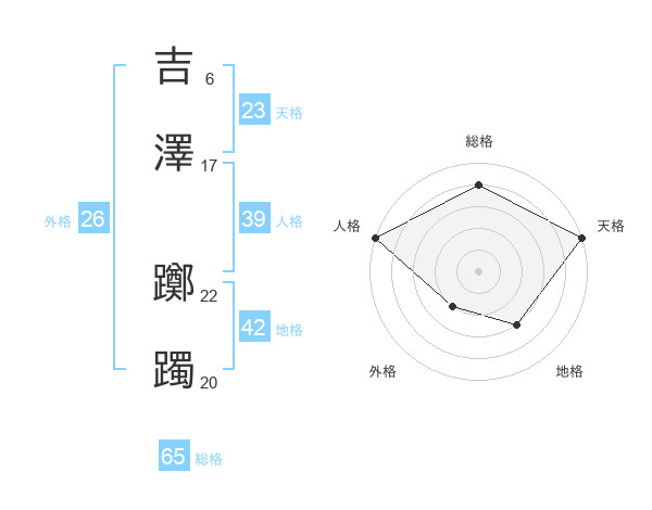 吉澤 躑躅さんを姓名の画数から五運を鑑定