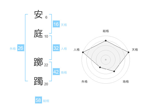 安庭 躑躅さんの総格は58画の4点!