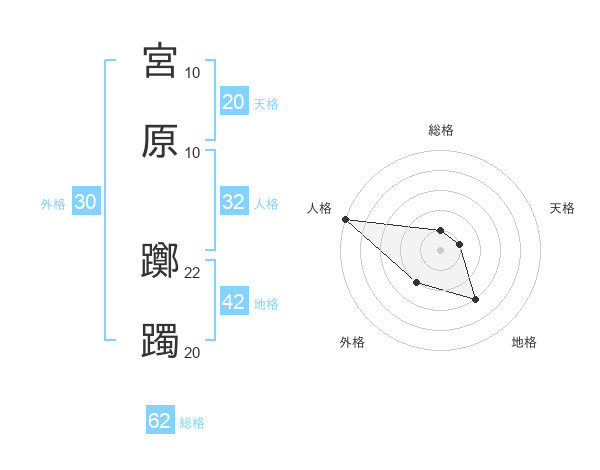 宮原 躑躅さんの天格は20画の1点!